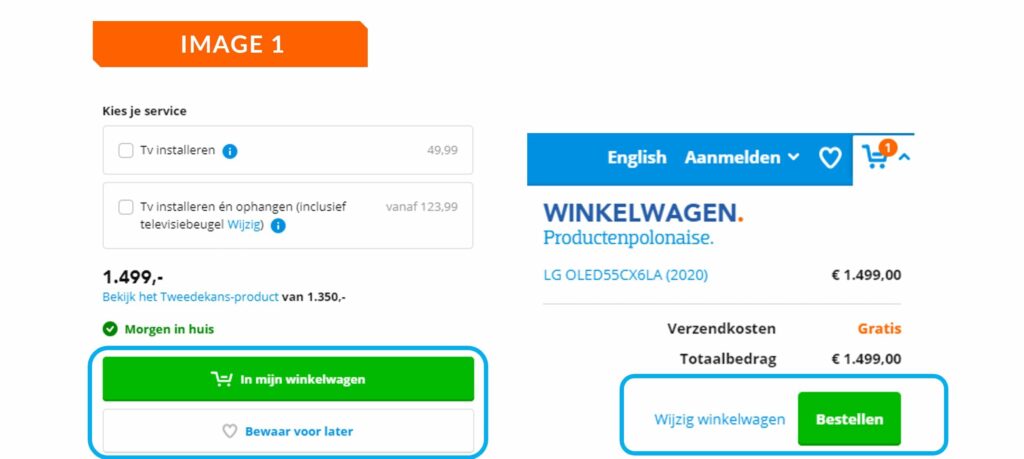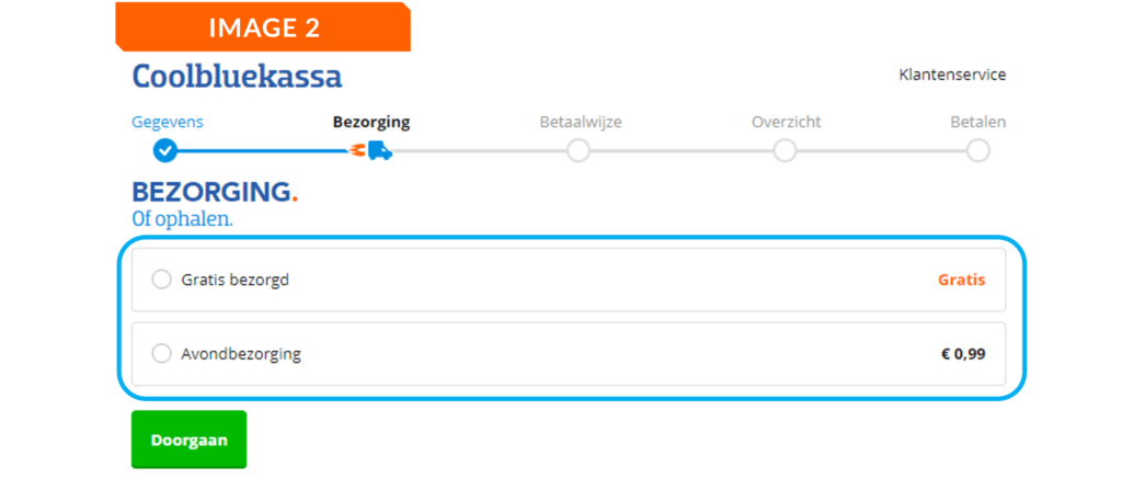 Coolblue uses the Hobson’s +1 choice effect in various places on their website. For example, in addition to the choice “Add to cart,” Coolblue also includes an option to “Save for later” beside each product, as seen in Image 1 above. Another example is that Coolblue gives the customer the freedom to choose between different delivery times (Image 2). By integrating the Hobson’s +1 choice effect, Coolblue ensures that consumers always feel like they have complete freedom of choice.