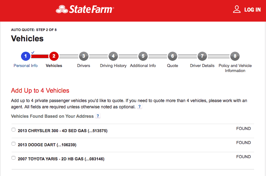 State Farm also takes a proactive approach during the quote process. Based on the address that the respondent punches in, State Farm displays the automobiles already registered at that address and offers a bundle insurance plan. The respondents of our study proved to be pleased by State Farm’s overview of the whole process, with a remarkable 89% of our respondents continuing forward on the website after first arriving to it.