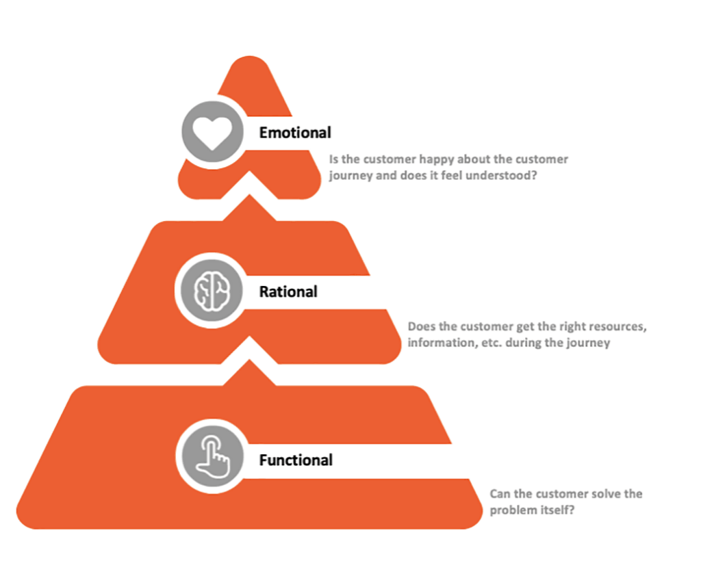 We assign a Digital Service Score to the service performance for each task and metric. There are also sub-scores for Channel Preference, NPS and CES, and scores for Rational (the right information), Functional (can the consumer solve the problem/perform the task) and Emotional (does the customer feel happy with their digital service journey and do they feel understood?). Check out our research model for Digital Service Benchmarking below:
