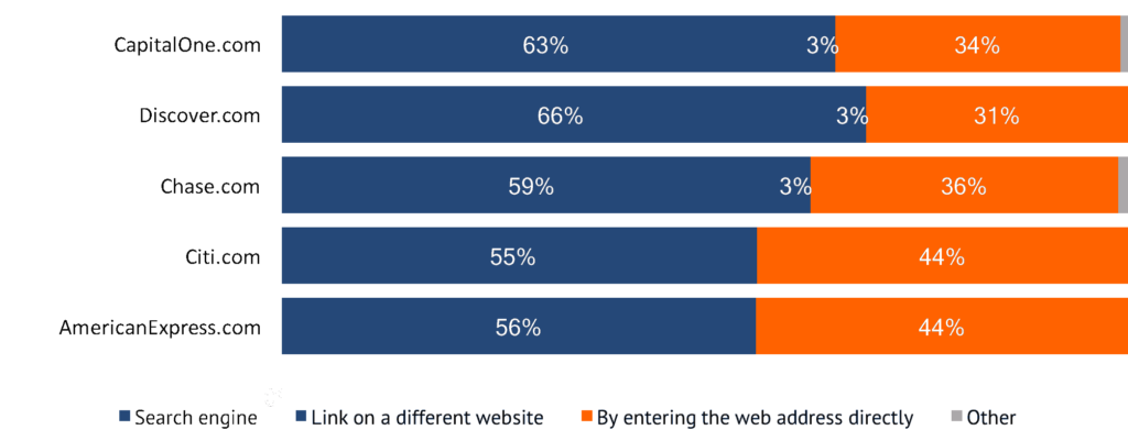 While the design and layout work to keep customers on the website, paid search engine results work supremely well in getting smartphone users to the site. A look at the data shows us that paid search results brought Capital One 11% more traffic from a smartphone than it did from users on a desktop. In Citi’s case, 15% more smartphone users reached the site through paid results in comparison to desktop users. It seems smartphone users are more prone to click on paid search results than on a computer, likely because regular results are “below-the-fold” on smartphones. This is another reason why it pays off for credit card companies to bump their names up to the top of search engine results.