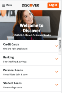What do Capital One and Discover, the top two performers of our Digital Sales Scan, have in common? When users first enter the websites on their smartphones, they are met with a neat homepage that can quickly guide them to whatever they need with ease. The navigation options on the homepages of both banks fill up 60% of the screen, and feature large icons and short texts like “find the right credit card” to make maneuvering around the website a breeze. And if a user wants more options, both banks make use of the recognizable “hamburger” icon at the top left corner. Making the homepage as easy to navigate as possible is reassuring for potential customers, and encourages them to continue further on their quest for a new credit card.