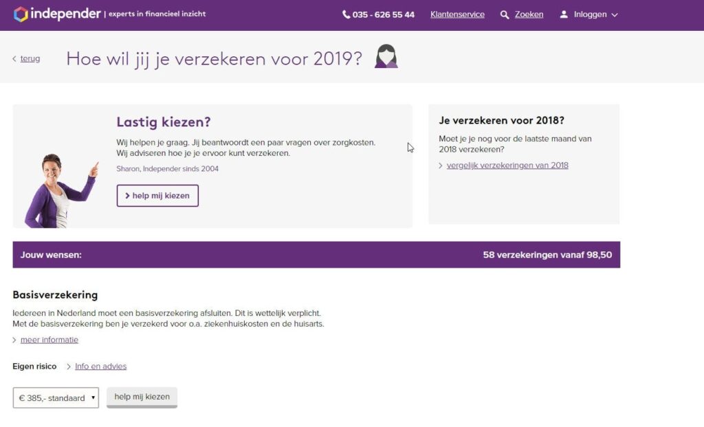 It’s the added extras that convince consumers to take out insurance on Independer.nl. The comparison site gives the impression of being independent and guides visitors through the choices that need to be made. This makes visitors feel as though they’re shown the best offer for the best price.