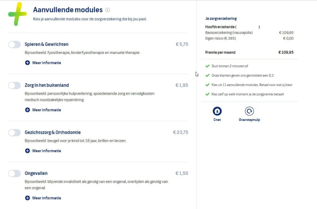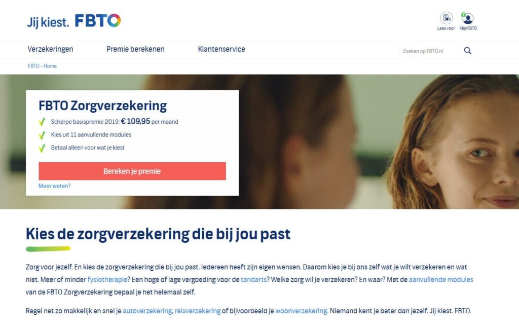 FBTO.nl claims: Choose the health insurance that suits you. It’s a slogan consumers appreciate. The brand proves to be faithful to this proposition is shown abundantly. For one, FBTO offers its visitors a lot of attention in each step that needs to be taken. For another, consumers can use a handy tool to adjust their own insurance. This way, CX and message complement each other wonderfully.