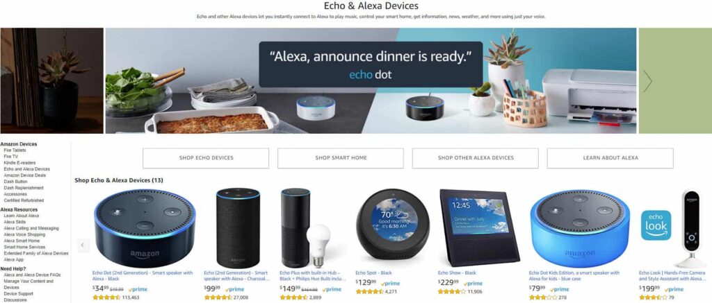 Upon seeing the theme Product Offer, you wouldn’t be foolish for thinking that it simply means the price at which a product is being offered for. Alas, it’s not so straightforward. While price plays a role in the score that a website receives for the theme Product Offer, it’s not the main factor. Product Offer deals with how a website presents the product it’s selling. Product Offer involves how the customer perceives the price of the product compared to its value, and how the website is able to validate the price at which the product is being offered for. Most importantly, achieving excellence within the theme Product Offer is being to explain exactly what your product is, and striking a balance between too many and too few options with an offer. Since Amazon.com recently swept away the competition in our first-ever benchmark study of the online market for Smart Speakers, we’re going to use the eCommerce giant to exemplify precisely what WUA means with the theme Product Offer.