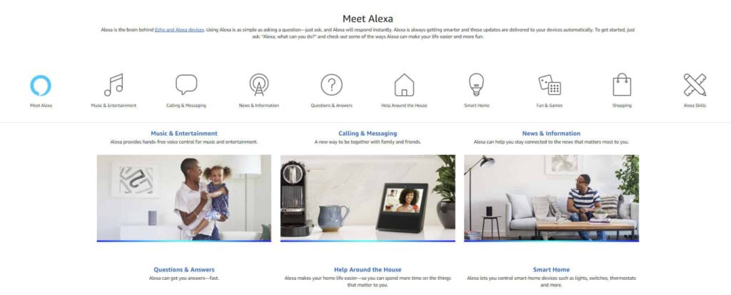 The Alexa homepage, with its subsections based on all the things Alexa is programmed to do, drives home just exactly what the customer can expect when buying this product. Notice that, unlike the product page, this page is designed with the clear-cut intelligibility, utilizing simple icons and leaving much space between the texts. Amazon.com goes to show here that you must not leave any room for doubt or confusion when selling your product online.