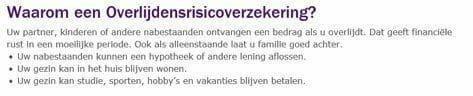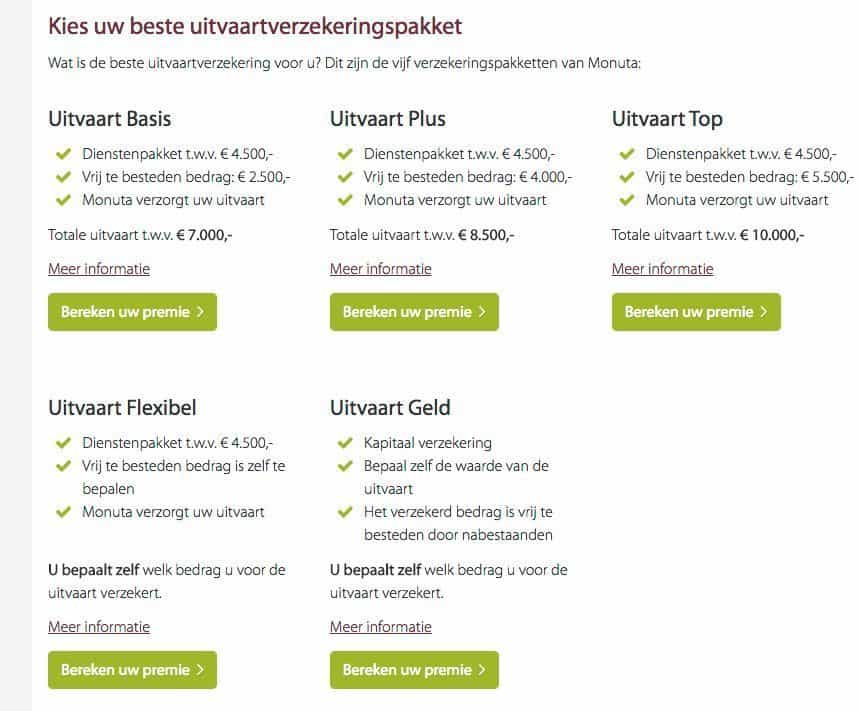 When searching for a life insurance policy, people often visit the website of Monuta, even though this party doesn’t offer life insurance. Often, the confusion already begins with Google: when people enter the Dutch word ‘overlijdensverzekering’, which literally means ‘death cover’, they could end up with results that include parties that offer life insurance, but also parties that only offer funeral insurance, like Monuta. Yet life insurance providers can learn from Monuta, because this provider excels at giving an overview of their offerings by putting different packages next to one another. Visitors can easily make a choice based on their own comparison.