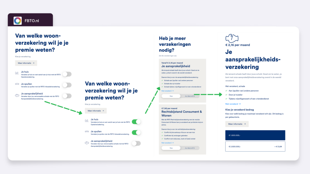 Insurers like FBTO play smartly with price perception by, for example, setting liability insurance to off by default or to the cheapest option. This keeps the base price attractive without changing the actual costs.