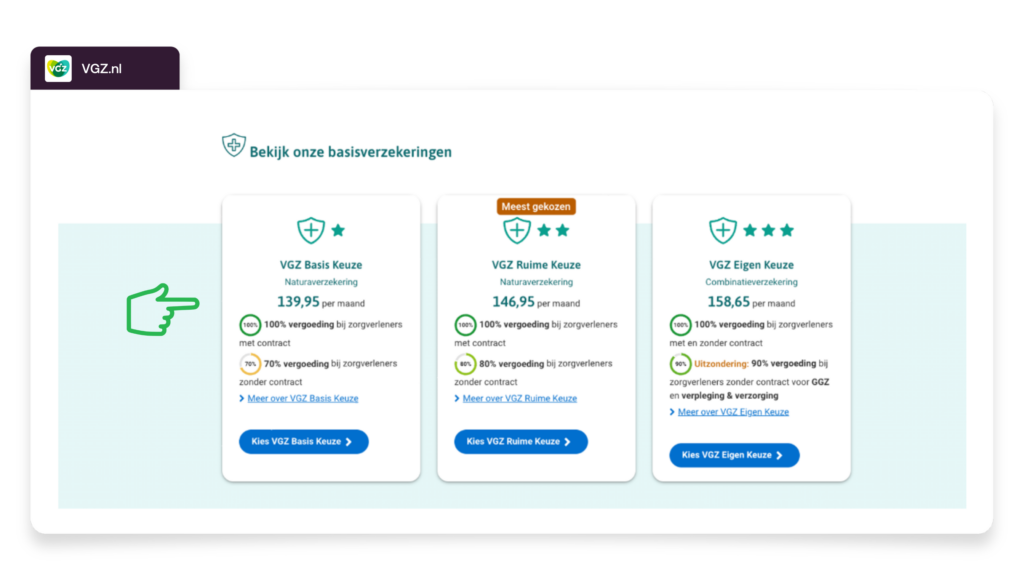 VGZ and ZilverenKruis show that it's possible to provide a premium indication without consumers having to share personal information directly. This increases trust and lowers the barrier to exploring the insurance further.