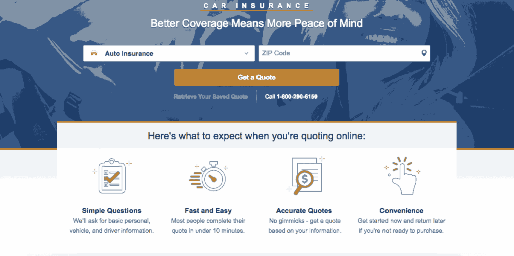 Het Boston-gebaseerde bedrijf, dat bovenaan stond wat betreft de uitstraling van hun website, vertelt bestuurders vooraf wat ze kunnen verwachten bij het online aanvragen van een autoverzekeringsofferte. Klanten krijgen vooraf de verzekering dat de vragen die gesteld worden eenvoudig zijn, dat de offerte accuraat zal zijn, en dat het minder dan 10 minuten duurt om te voltooien. Bovendien krijgen potentiële klanten ook te horen dat ze later kunnen terugkeren als ze nog niet klaar zijn om aan te schaffen. De bijbehorende pictogrammen helpen deze boodschap over te brengen en moedigen auto-eigenaren aan om door te gaan met het krijgen van een offerte.