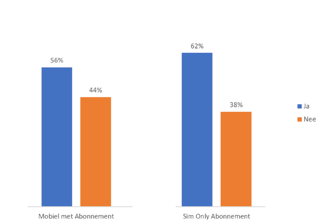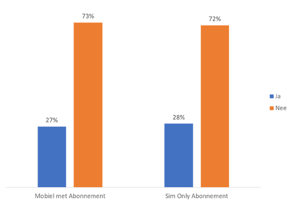 Op de vraag of ze zouden overwegen alle diensten bij één provider onder te brengen, zegt het merendeel van de consumenten dat ze dit niet zouden overwegen bij het afsluiten van een mobiele telefoon met abonnement (73%) of een sim-only abonnement (72%).
