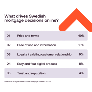 In onze recente Digital Market Tracker volgden we 400 echte Zweedse consumenten terwijl ze online zochten, vergeleken en een hypotheekverstrekker kozen. Naast marktprestatie-inzichten zoals vindbaarheid, conversie, marktaandeel en concurrentieanalyse, onthult hun feedback wat keuze werkelijk drijft en wat merken nog steeds tegenhoudt.
