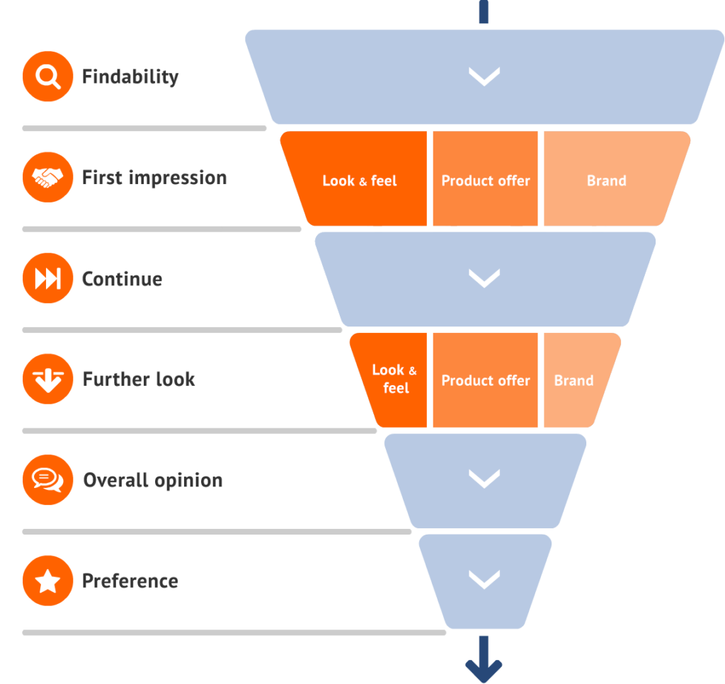 Het begint allemaal met Vindbaarheid. Als een aanbieder niet wordt gevonden, kunnen respondenten het betreffende merk niet prefereren. Zodra een verzekeraar vaak genoeg wordt gevonden, gaan de onderwerpen Look&Feel, Aanbod en Merk een belangrijke rol spelen. Het punt van dit zorgverzekering oriëntatieonderzoek is dat informatie makkelijk te lezen moet zijn en beknopt moet worden gepresenteerd (Look&Feel). De basis- en aanvullende verzekering moeten niet alleen goed geprijsd zijn, het bedrijf moet ook duidelijk zijn over welke dekking ze bieden (Aanbod). Verder is het cruciaal dat een verzekeraar makkelijk bereikbaar is en vertrouwen uitstraalt (Merk). Als dit allemaal op orde is, en mensen daadwerkelijk op het punt staan om een zorgverzekering aan te vragen, dan draait het allemaal om een bestelproces dat zo prettig en soepel mogelijk is.