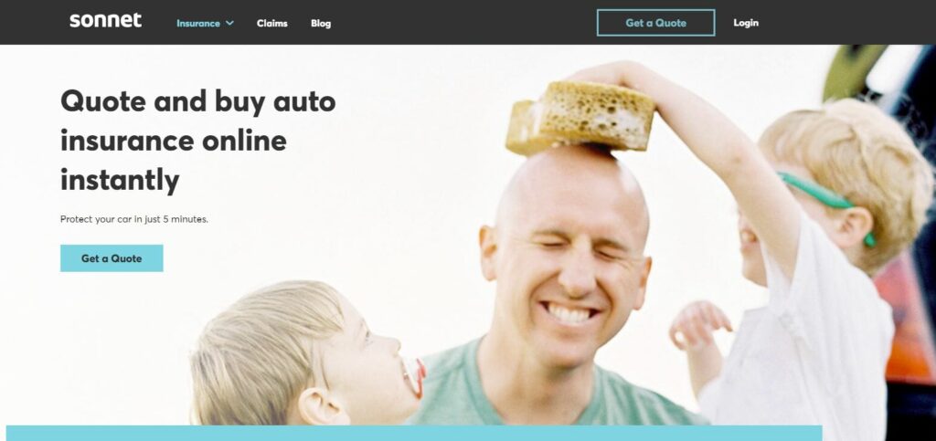 Iets minder emotioneel beladen maar gebaseerd op hetzelfde principe is Sonnet, een Canadese verzekeraar die autoverzekeringen verkoopt. Een afbeelding van een vader die samen met zijn kinderen zijn auto schoonmaakt is leuk, herkenbaar en relevant. Andere afbeeldingen op hun webpagina tonen hun hoofdpropositie: 'Koop online autoverzekering.'