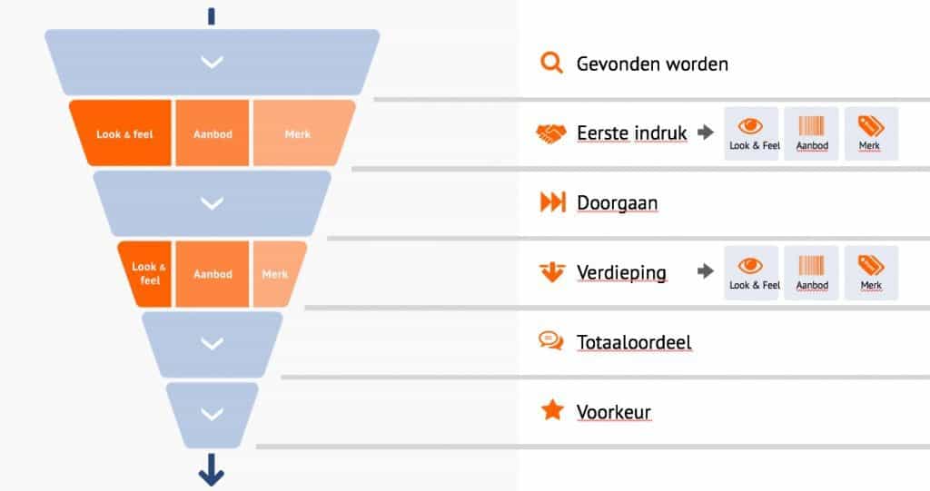 In de verdiepingsfase wordt potentiële klant wat specifieker uitgevraagd over de website: “Is deze website de juiste website om daadwerkelijk dit product aan te schaffen”. Bij het thema-onderdeel Look&Feel (lees hier meer over het WPS-model) wordt dan gekeken naar: