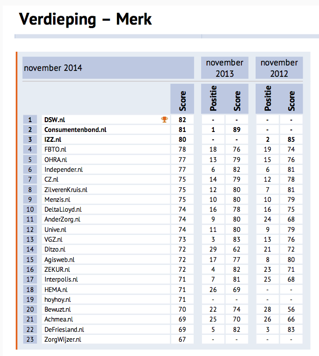 Bron tabel: WUA! Web Performance Scan Zorgverzekering 2014.
